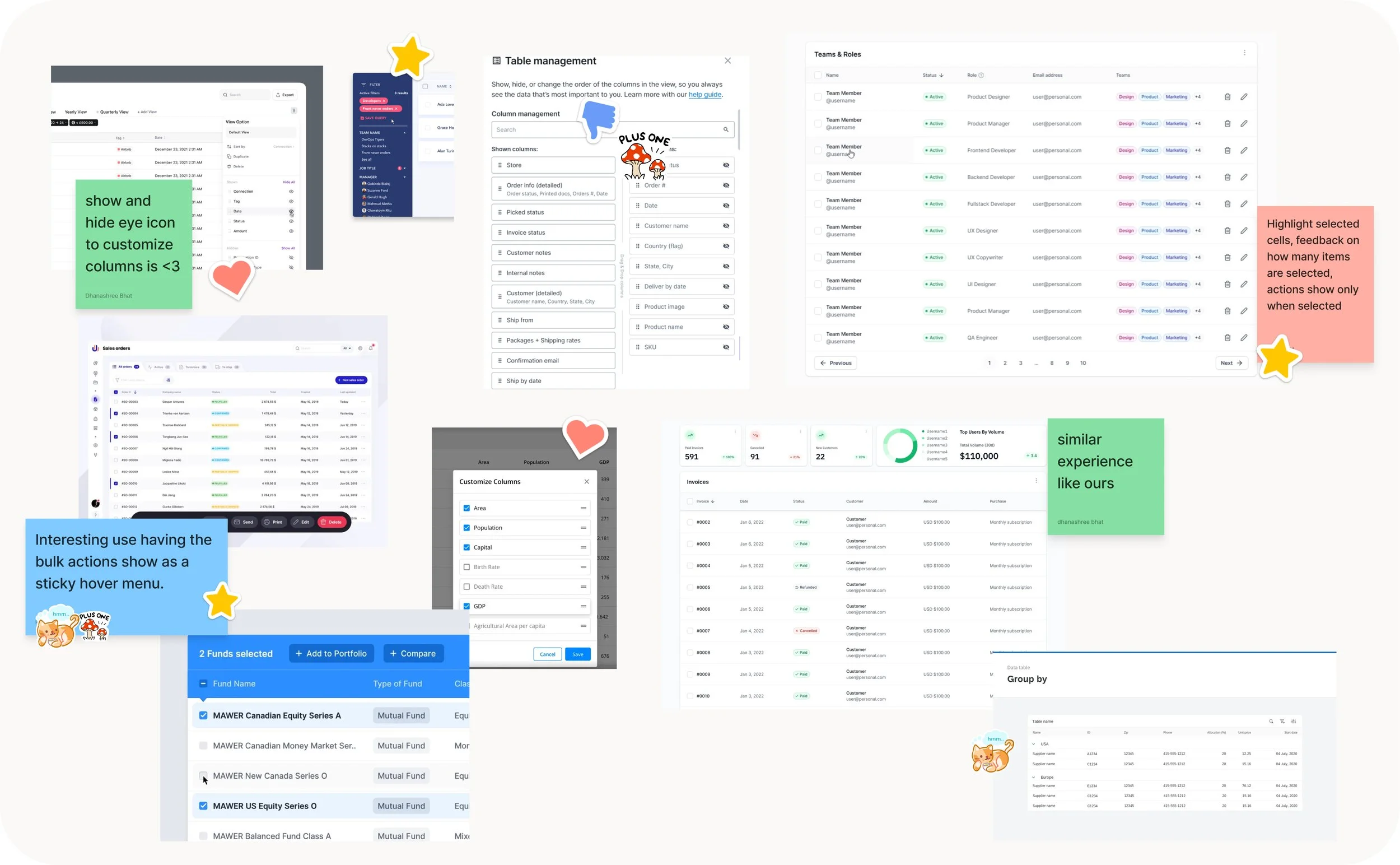 We started ideating on enhancing our table experiences. We identified best practices and trends for different aspects of data heavy experiences.