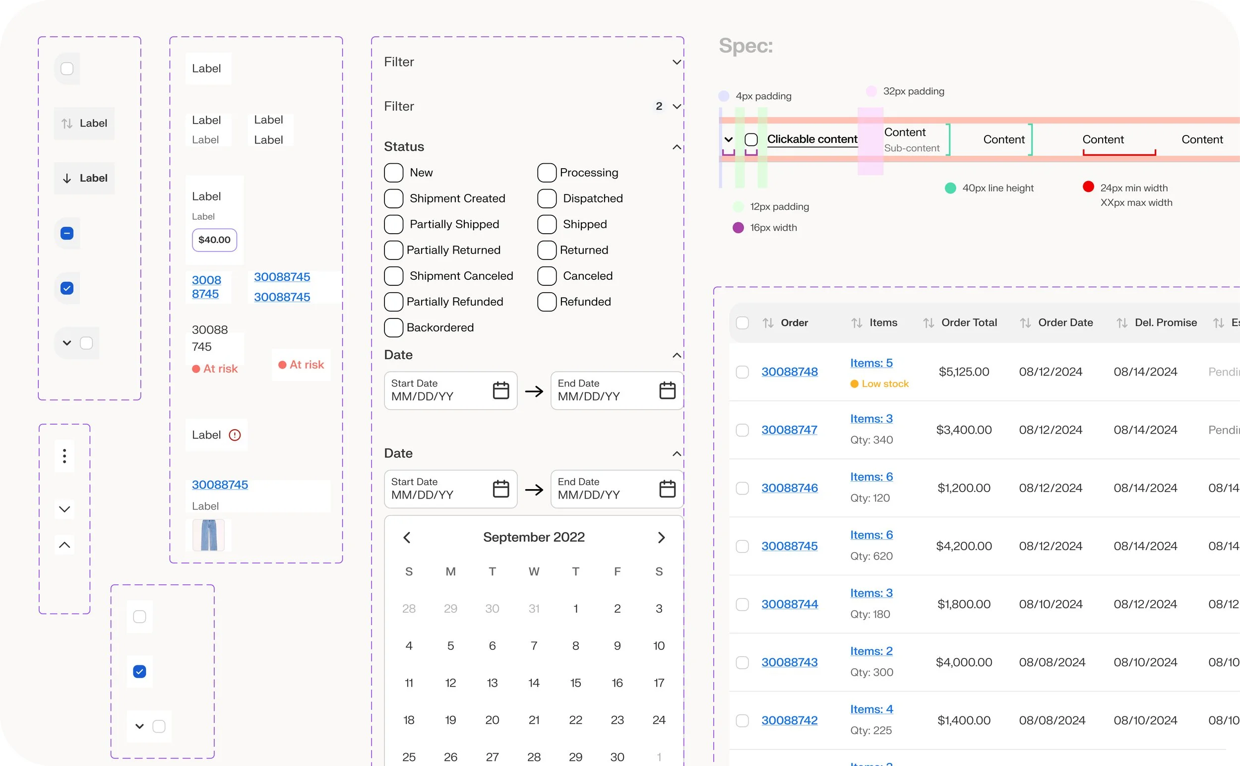 Since most post-purchase merchant activities are data heavy, I worked with 2 designers on curating tables across the platform to identify similarities and edge scenarios.