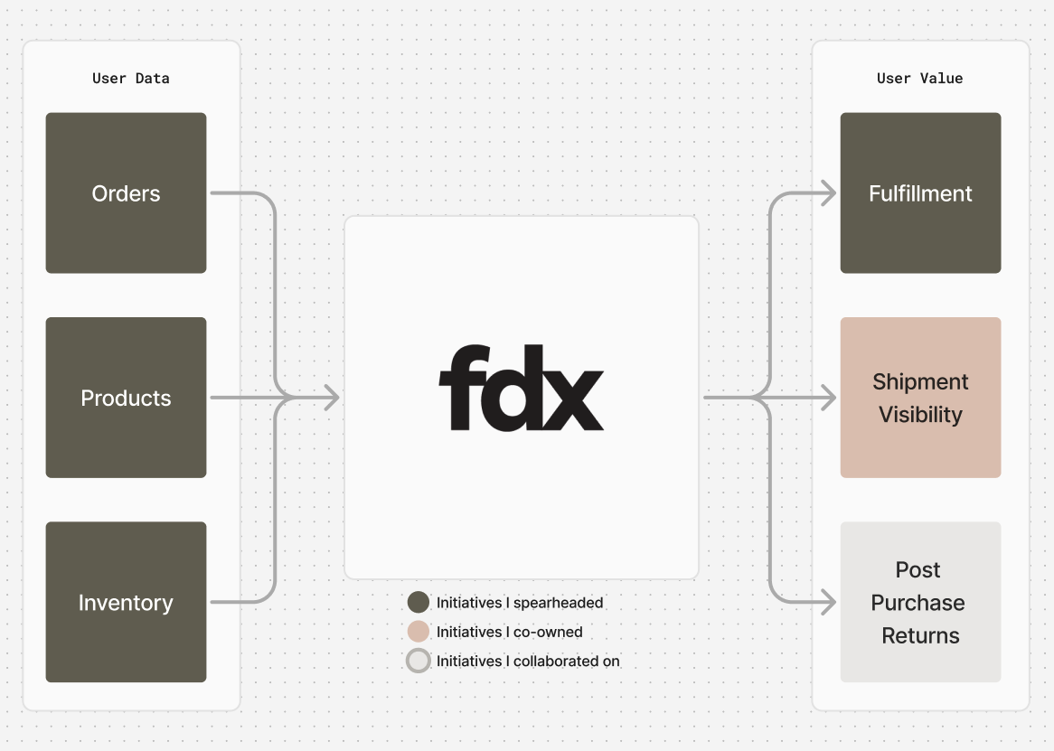 Leading the product & inventory management system within FDX. This project involves large scale product data input from merchants, international customs clearance, inventory admin experience and inventory integrations using 3rd party tools. 15+ retail brands onboarded on product catalog.